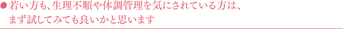 若い方も、生理不順や体調管理を気にされている方は、まず試してみても良いかと思います